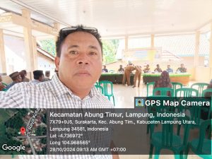Hadir dalam acara tersebut, Ketua BPD, Camat Abung Timur, Kepala Puskesmas Abung Timur, Babinsa, Babinkamtibmas dan Iis Hadiman serta Ika Mariantini selaku Tenaga ahli Koordinator Kabupaten sementara dari pendamping Desa di hadiri, Koordinator kecamatan Marwansyah, Herry Hepny dan Perlina.