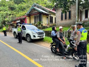 LAMPUNG BARAT (Handalnews) Satuan Lalu Lintas (Satlantas) Kepolisian Resor Lampung Barat Polda Lampung, menggelar Patroli Hunting System (PHS) di Jalan Lintas Krui Kecamatan Balik Bukit dan Lintas Sumatera Selatan via Kecamatan Sukau, Lampung Barat, pada Jum’at 10 Januari 2024. Dari operasi tersebut, Satlantas Polres Lampung Barat, memberikan teguran lisan kepada beberapa pengendara dan memberikan Tilang kepada pengendara Roda dua yang tidak dilengkapi dokumen kendaraan secara lengkap.