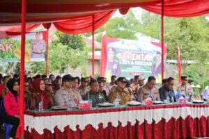 Dalam penyampaiannya, Penjabat Bupati Lampung Barat mengatakan jika program gerakan penanaman benih Jagung serentak seluas 1 juta hektare merupakan kerja sama antara Polri dan kementerian pertanian Republik Indonesia yang bertujuan untuk mendukung target swasembada pangan nasional pada tahun 2025 dan diharapkan swasembada pangan dapat terwujud melalui kolaborasi dan sinergi bersama.