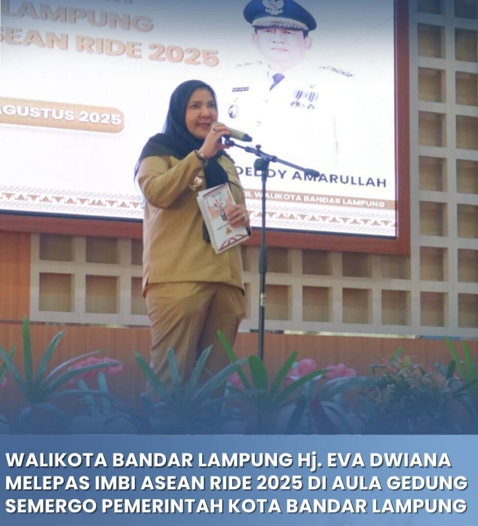 Bandar Lampung—(Handalnews.id). Wali Kota Bandar Lampung Hj. Eva Dwiana Melepas IMBI Asean Ride 2025 Di Aula Gedung Semergo Pemkot Bandar Lampung, Selasa (05/08/2025).