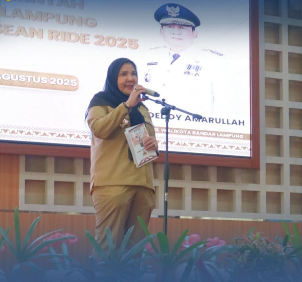 Bandar Lampung–(HANDALNEWS.ID). Wali Kota Bandar Lampung Hj. Eva Dwiana Melepas IMBI Asean Ride 2025 Di Aula Gedung Semergo Pemkot Bandar Lampung, Selasa (5/08/2025).