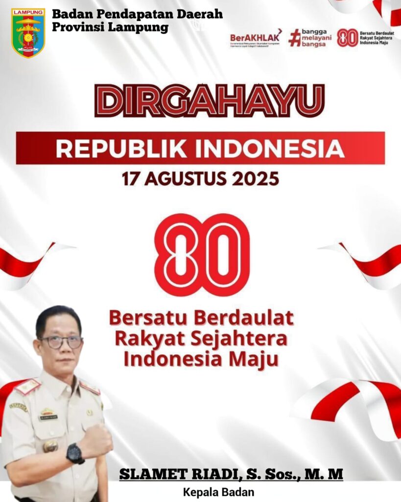 IKLAN Iklan HUT RI dari BPD Provinsi Lampung admin Agustus 19, 2025 0 Bagikan ke : Jumlah Pembaca: 257Continue ReadingPrevious Iklan Ucapan Selamat Hari Raya Idul Adha dari MKKS SMK Kabupaten TanggamusNext Iklan Dirgahayu Lampung Barat dari RS Alimuddin Umar More Stories IKLAN Iklan Ucapn Tahun Baru 2026 admin Januari 7, 2026 0 BANDAR LAMPUNG IKLAN KOTA METRO LAMPUNG BARAT LAMPUNG SELATAN LAMPUNG TENGAH LAMPUNG TIMUR PESAWARAN TULANG BAWANG TULANG BAWANG BARAT Uncategorized Iklan Sellamat Hari Guru admin November 26, 2025 0 IKLAN Iklan Ucapan Sumpah Pemuda Dari Bappenda Provinsi Lampung admin Oktober 28, 2025 0 Tinggalkan Balasan Batalkan balasanAlamat email Anda tidak akan dipublikasikan. Ruas yang wajib ditandai *Komentar *Nama * Email * Situs Web Simpan nama, email, dan situs web saya pada peramban ini untuk komentar saya berikutnya. Δ