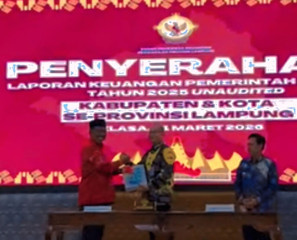 Pelaksana Tugas (Plt.) Bupati Lampung Tengah, I Komang Koheri, bersama 13 kepala daerah kabupaten/kota se-Provinsi Lampung secara resmi menyerahkan Laporan Keuangan Pemerintah Daerah (LKPD) Unaudited Tahun Anggaran 2025 kepada Kepala Badan Pemeriksa Keuangan (BPK) Perwakilan Lampung. Kegiatan tersebut berlangsung di Kantor BPK Perwakilan Lampung, Kota Bandar Lampung, Selasa (31/3/2026).