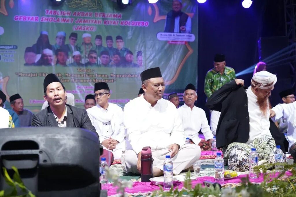 Lampung Tengah—(Handalnews.id). Plt. Bupati Lampung Tengah I Komang Koheri bersama Plt. Ketua TP PKK Lampung Tengah Ni Ketut Dewi Nadi Komang Koheri menghadiri kegiatan Tabligh Akbar dan Gebyar Sholawat Jamiyah Kiyai Kolosebo (JASKO) dengan tema “Merajut Ukhuwah, Menguatkan Iman, Menyatukan Umat dalam Harmoni Sholawat”, Rabu (29/04/2026).